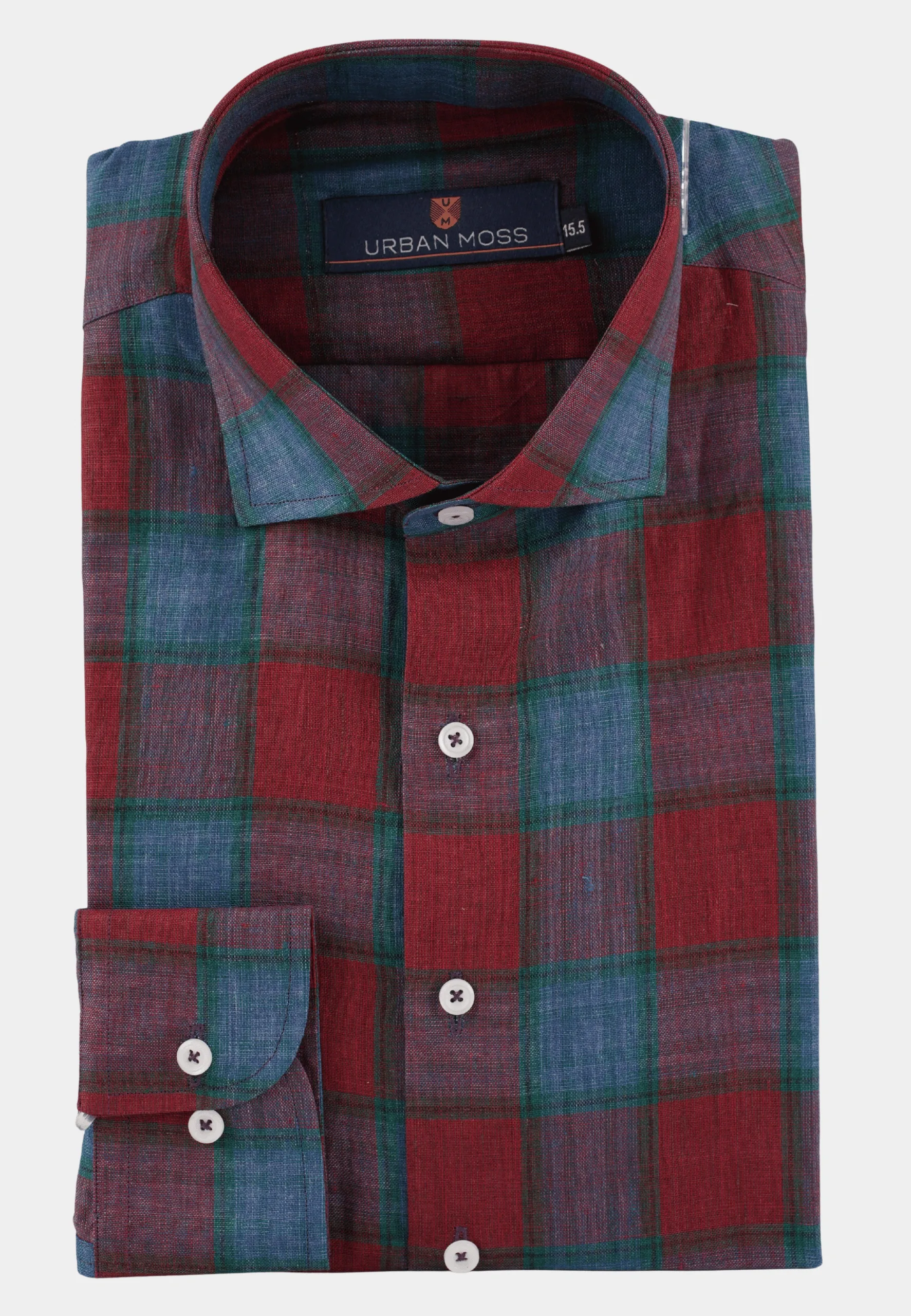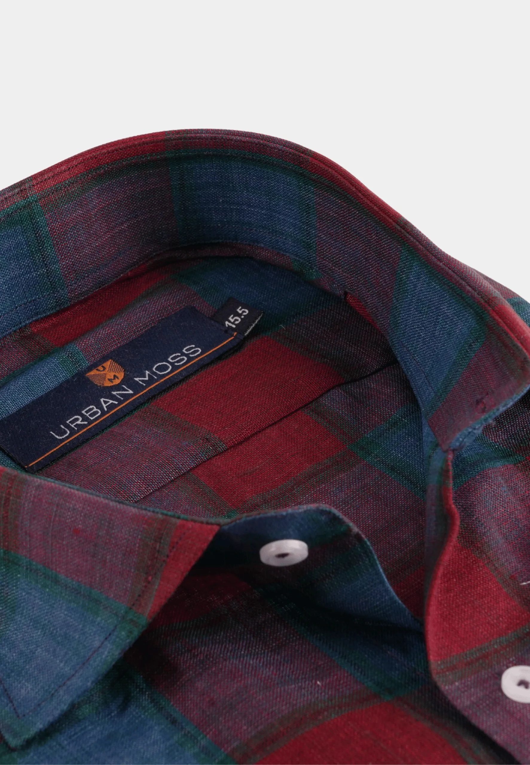Bold, refined, and effortlessly breathable — the Urban Moss Burgundy & Teal Plaid Linen Shirt is designed for men who appreciate classic patterns with modern comfort.Key Features