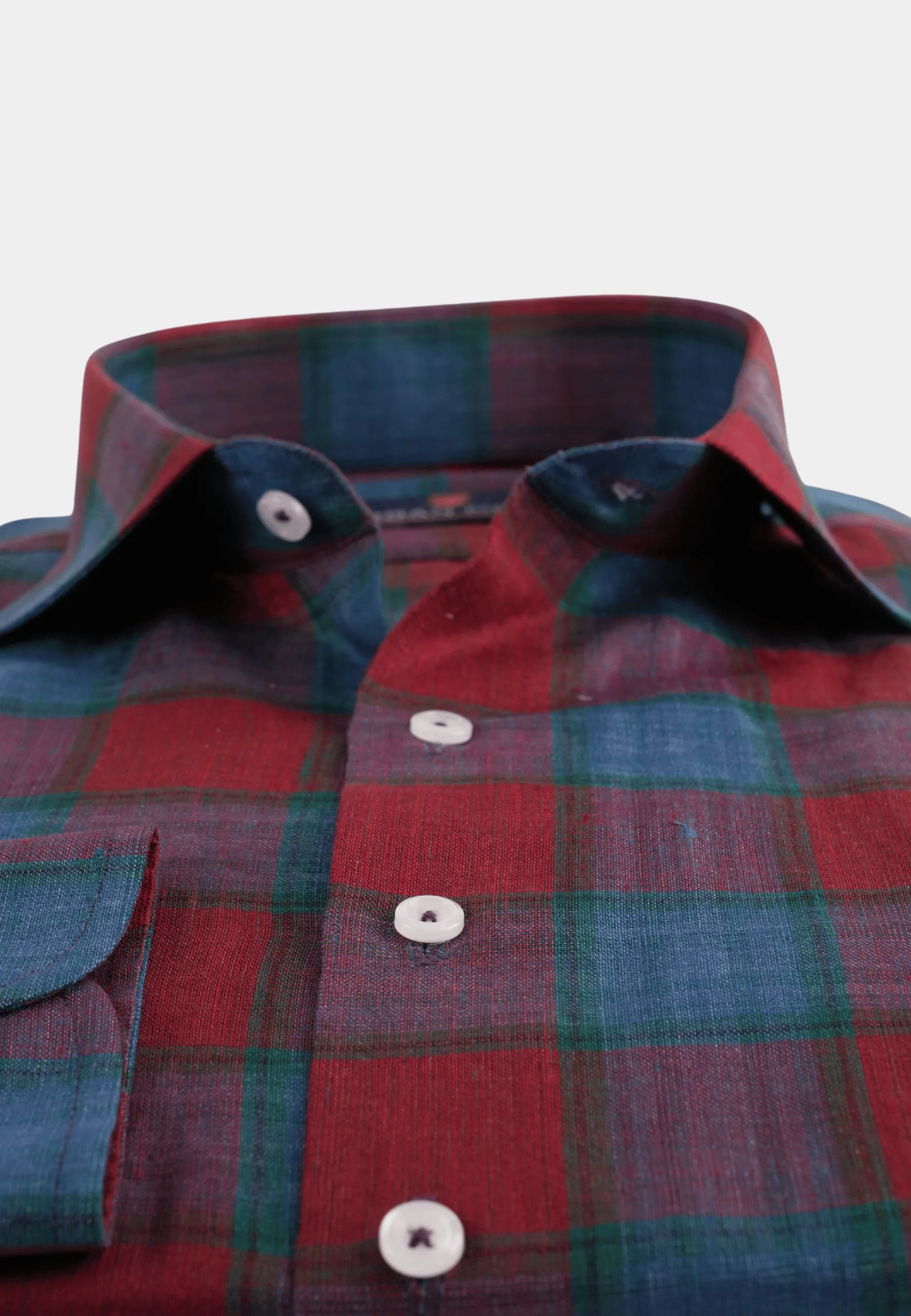 Burgundy & Teal Plaid Linen Shirt