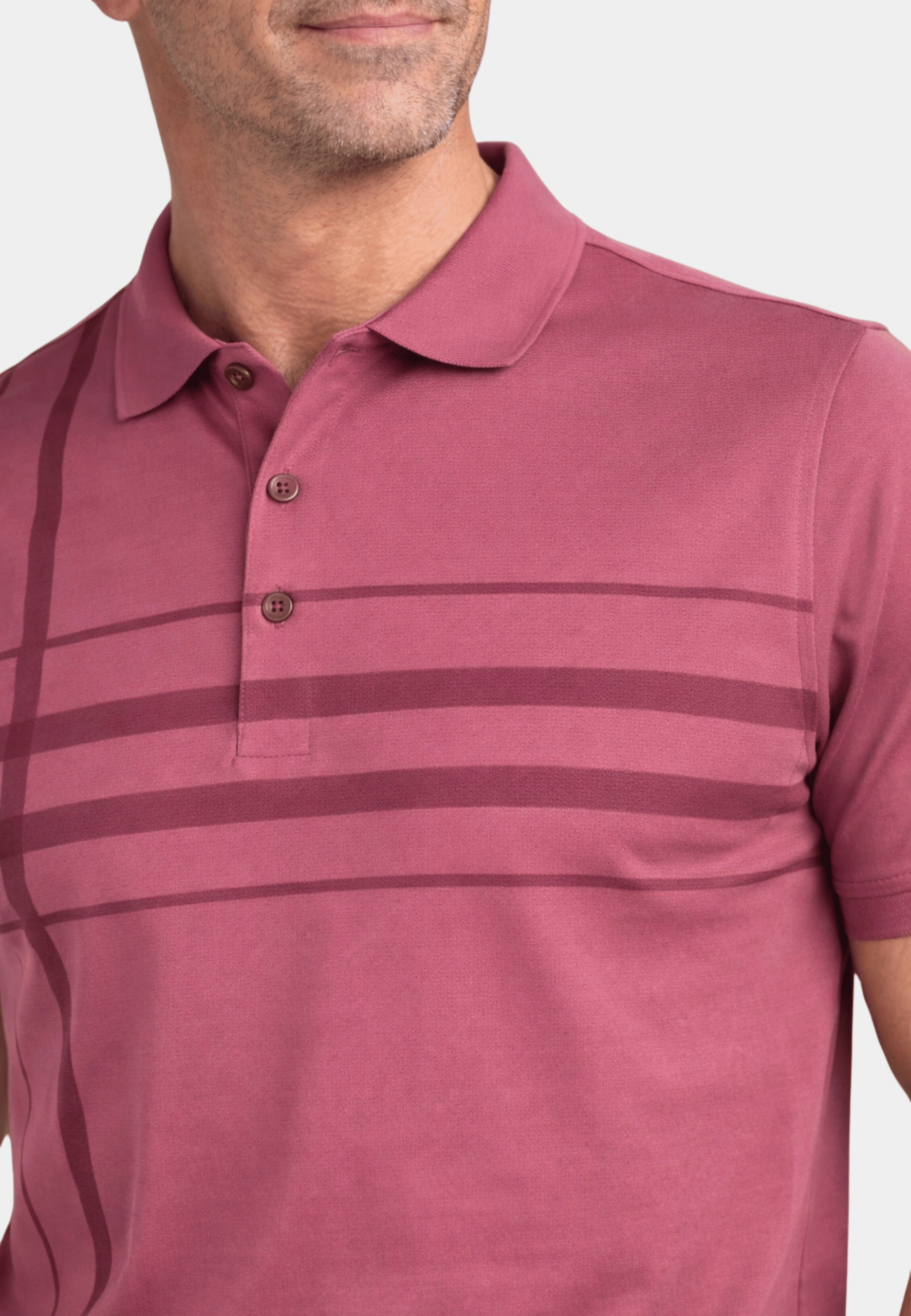 Refined style meets everyday comfort in this Patterned Dusty Rose Polo Neck T-Shirt, crafted from 100% mercerized cotton for a smooth, luxurious finish and long-lasting wear. Designed with a regular fit and classic polo collar, this piece transitions effortlessly from smart-casual outings to relaxed evenings, making it a versatile addition to your wardrobe.