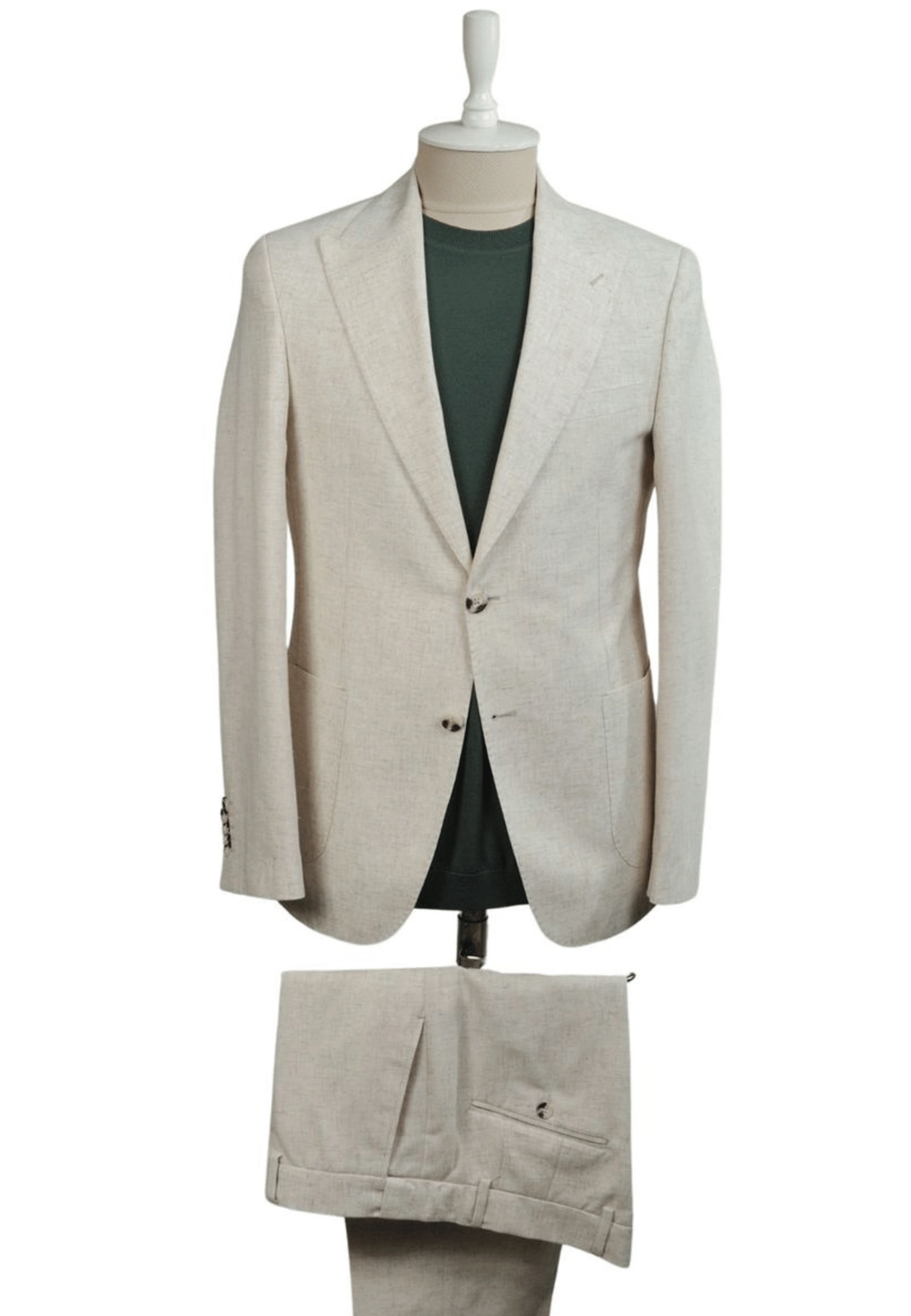 Pair this Beige Linen Sport Suit with a crew-neck or light shirt, loafers, or suede shoes for a relaxed yet polished look. Perfect for daytime events and summer evenings.