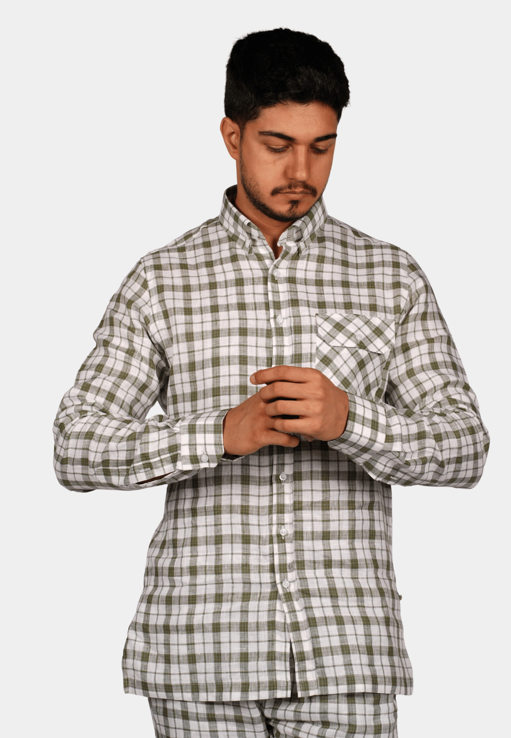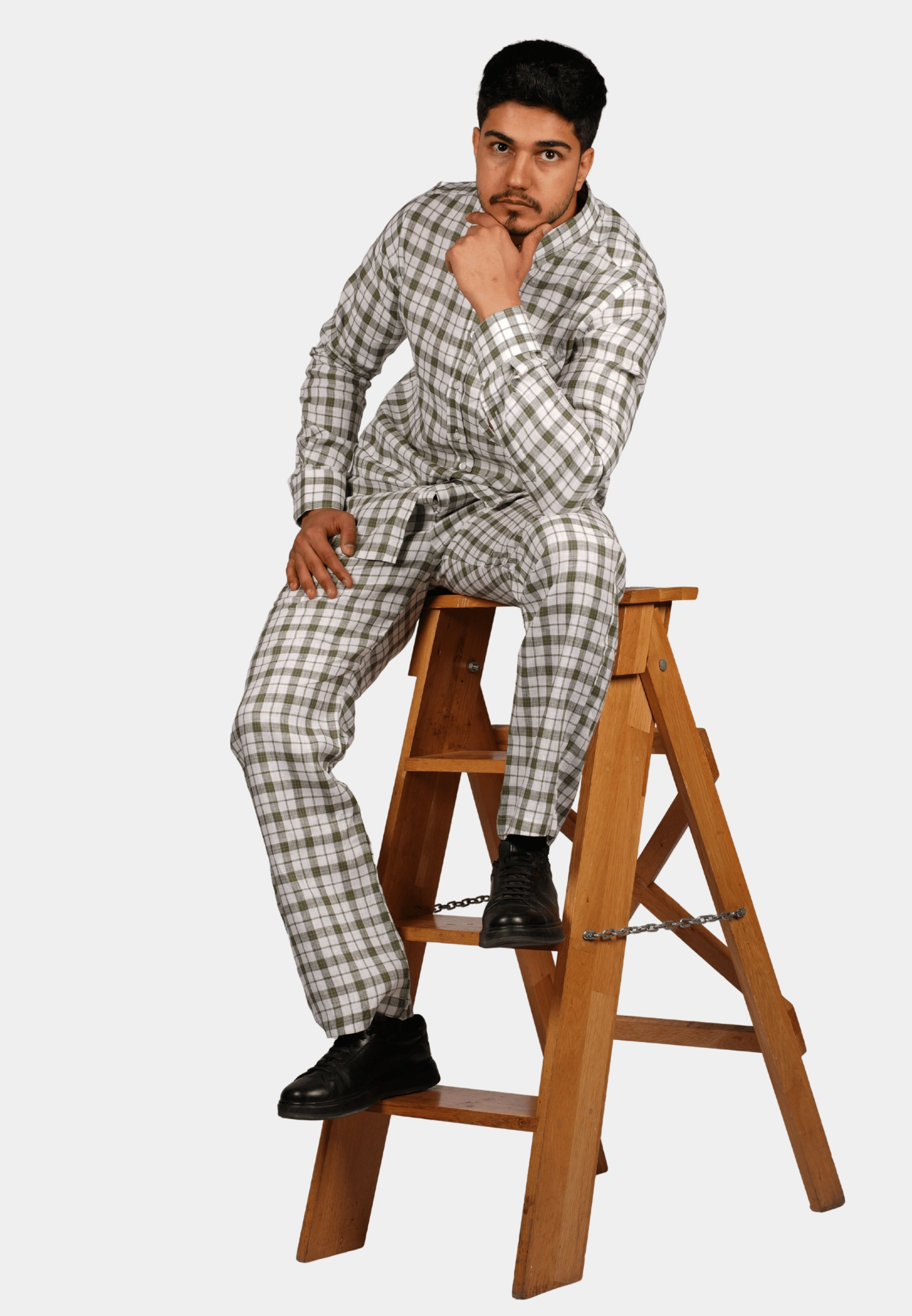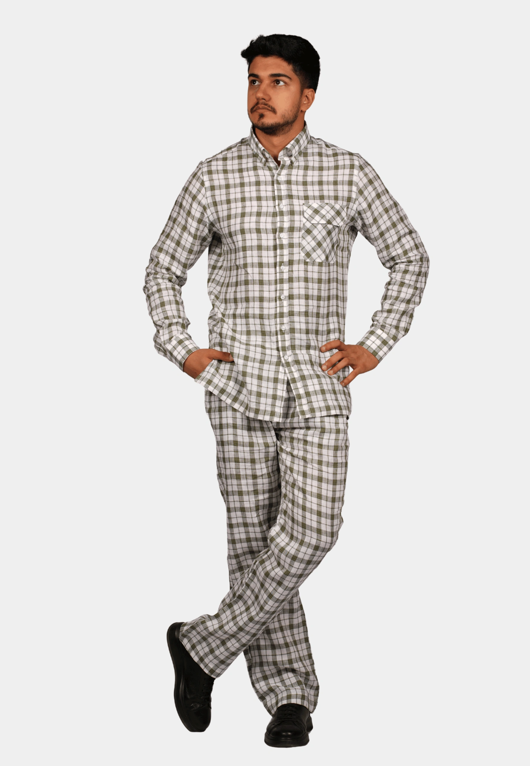 Upgrade your smart-casual wardrobe with this refined Olive Grid Co-ord Set, designed for effortless coordination and modern elegance. Featuring a classic green and white check pattern, this two-piece set blends timeless design with contemporary tailoring. Crafted for comfort and style, the matching shirt and trousers create a clean, structured look that works perfectly for casual outings, weekend gatherings, or smart day events.