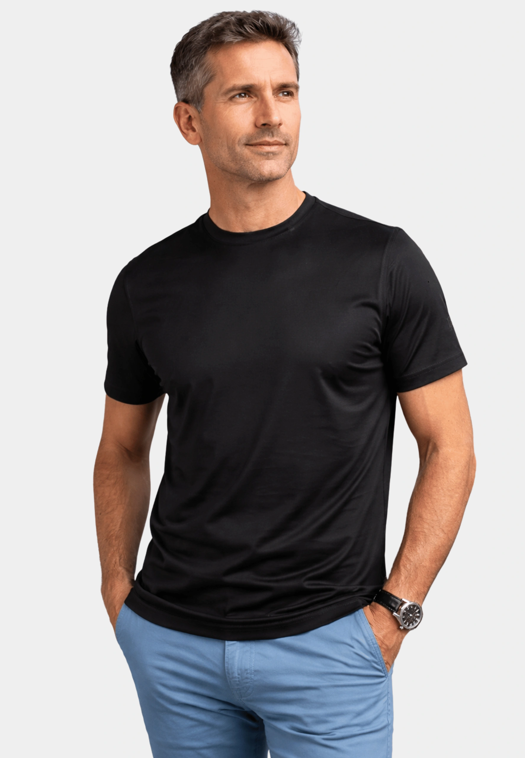 A timeless essential crafted for everyday elegance. This Regular Fit Black Crew Neck T-Shirt is made from 100% mercerized cotton, offering a smooth, refined finish with a subtle sheen that elevates a classic wardrobe staple.Key Features
