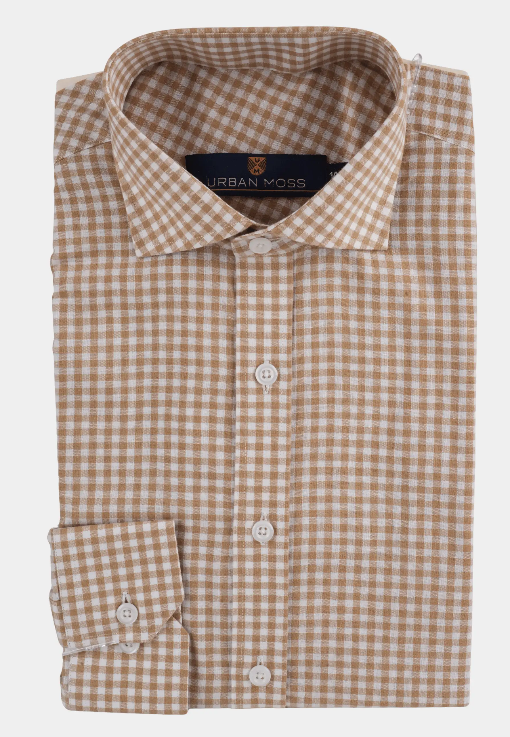 Timeless charm meets everyday sophistication in the Urban Moss Sandstone Gingham Cotton Shirt.Key Features