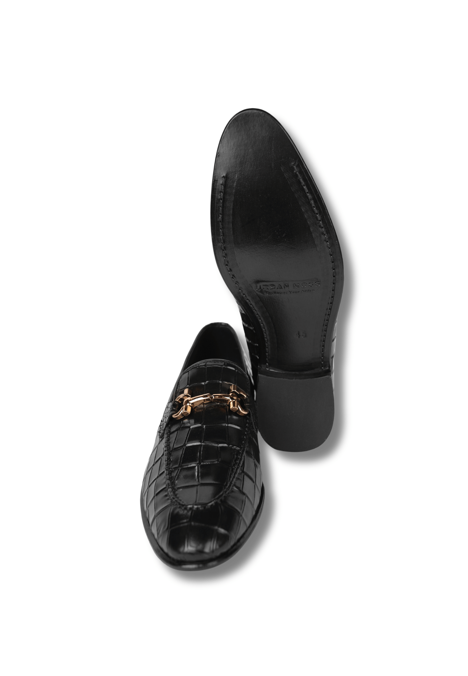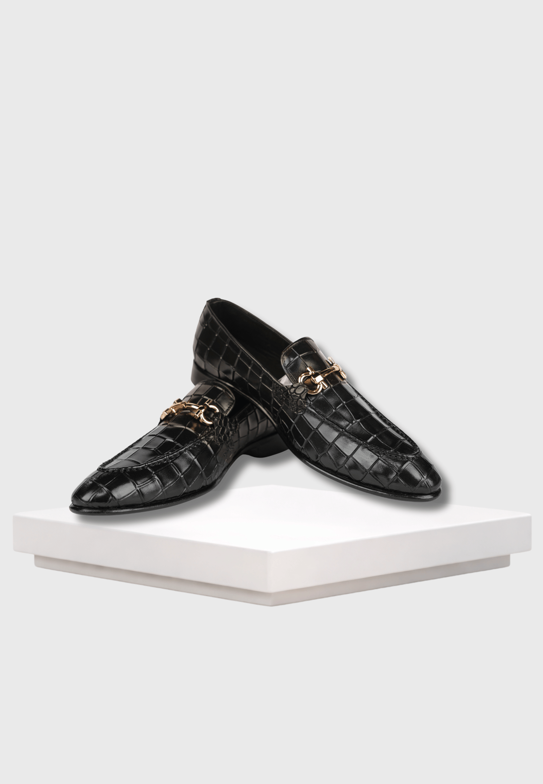 Bold and luxurious, these croc-embossed loafers are finished with a gold bit accent, delivering a statement look for men who appreciate premium craftsmanship.